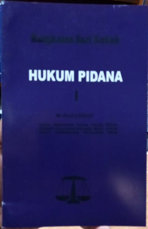 Abstrak Hukum Pidana Buku kecil ini adalah Hukum Pidana I. Pelajaran hukum pidana sebaik-baiknya akan terdiri dari tiga bagian, sesuai dengan rencana pelajaran hukum pidana di Fakultas Hukum, yang mengenal tiga tingkatan. Oleh sebab itu, maka dalam jilid I meliputi sebanyak mungkin bahan-bahan mata pelajaran Hukum Pidana I antara lain sejarah hukum pidana tertulis, tempat dan sifat hukum pidana, ilmu hukum pidana, arti kriminologi bagi hukum pidana, hukuman dan dasar hukuman. Dan jilid II, yang meliputi sebanyak mungkin bahan-bahan mata pelajaran Hukum Pidana II bagian lain pelajaran-pelajaran umum hukum pidana, hukum panitensier (sistem hukum dan tindakan) dan politik hukum pidana. Dalam jilid III seharusnya dibicarakan delik-delik khusus (bijzondere delicten). by:of